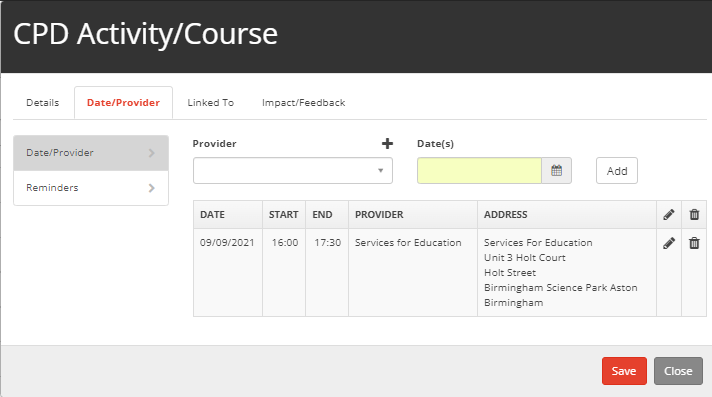 The CPD Reports screen now includes a column to show the provider for the course and is also included in the export.