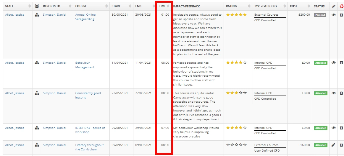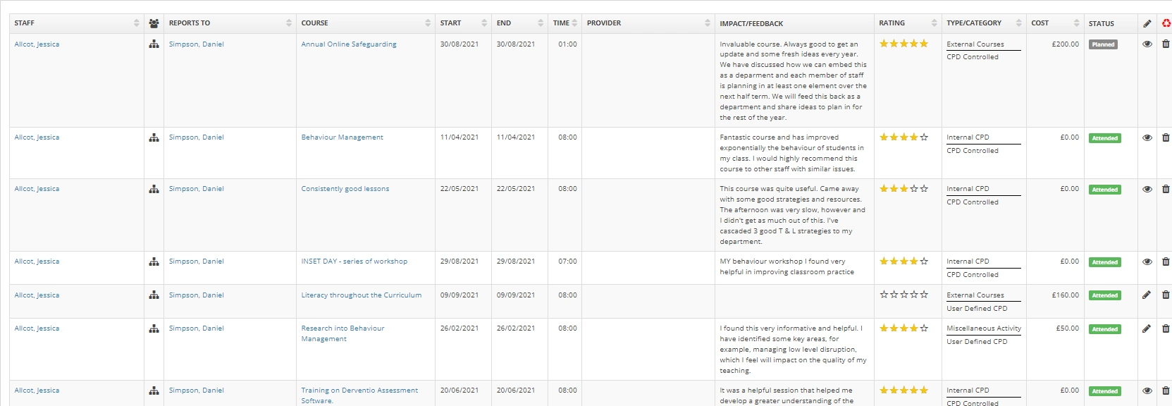 You will also be able to filter the CPD Activities/Course report using the Status filter with the value set to delivered to see which staff have delivered your courses.