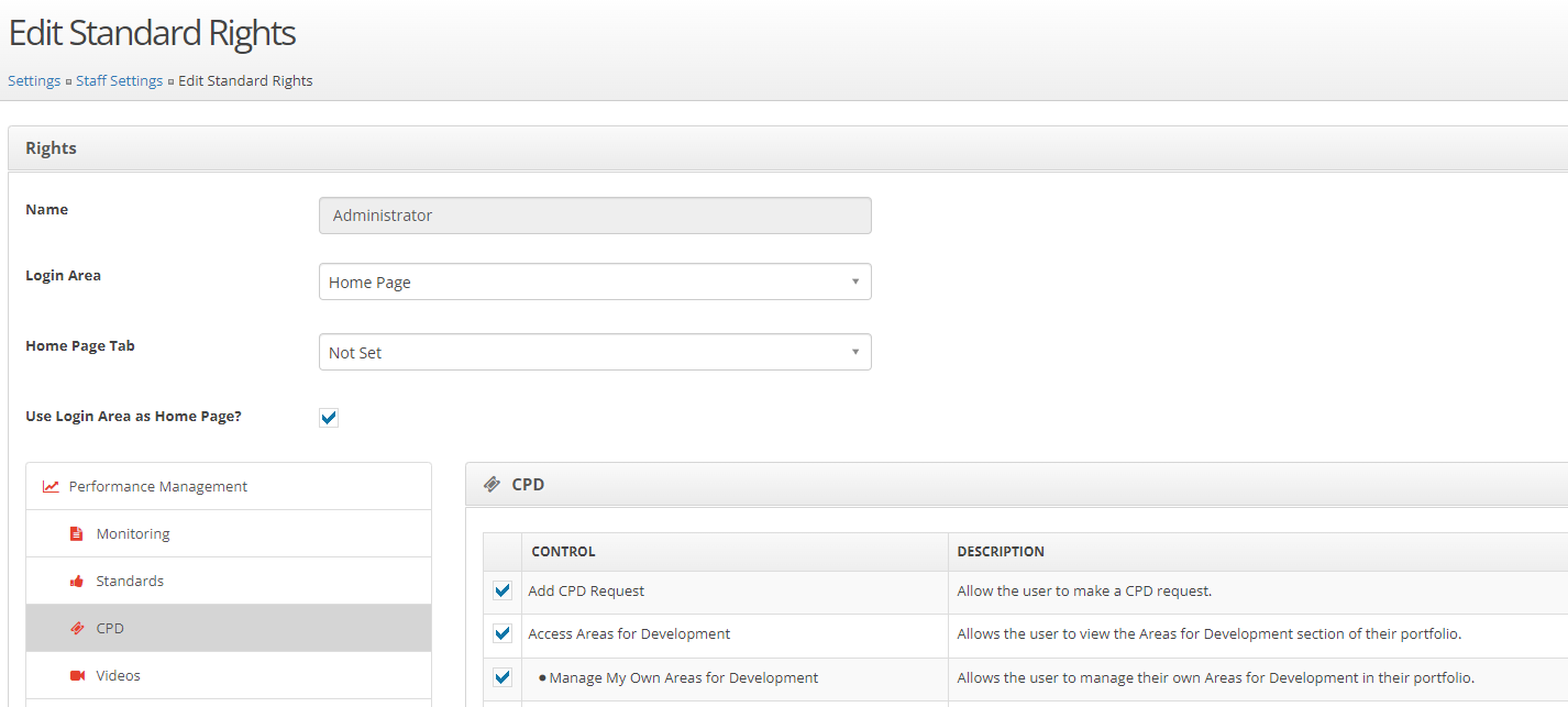 NB: CPD Coordinators will need to have the following rights added to allow them to access this area.
