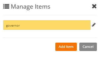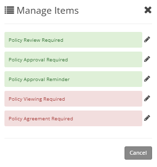 As well as being able to modify the list items by selecting the cog on the main screen the list items can be modified from within the policy itself by clicking the Cog icon against the field within the policy.