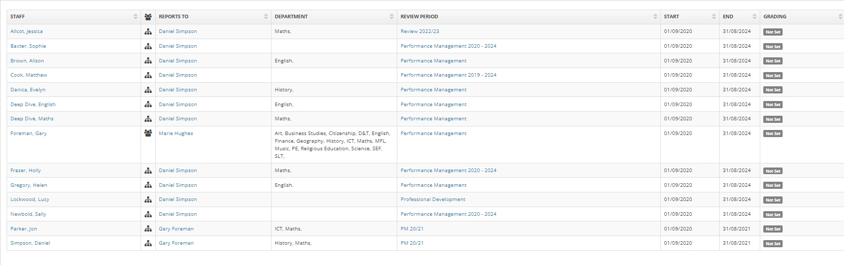 The review grading report now includes the staff members' department(s) as part of the report screen and exports.
