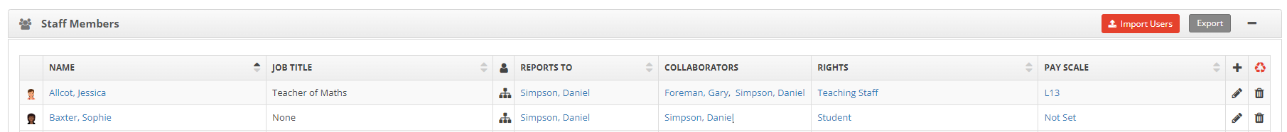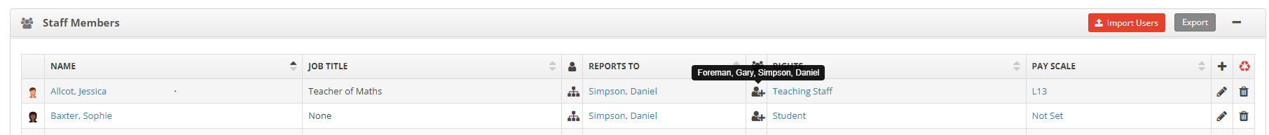 If only the 'Show collaborators column on the staff members screen?' is selected it will add a new column with the Icon for Collaborators which will show a tooltip with the collaborators name(s).