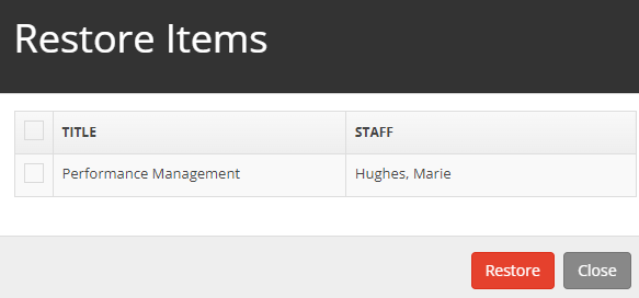 The restore button on the staff members page has been moved from the top right of the staff members table to the top of the screen next to the Add Staff button.