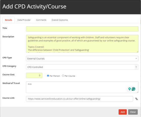 The system now has a new status available against CPD Records to indicate if the staff member was the trainer for the CPD.