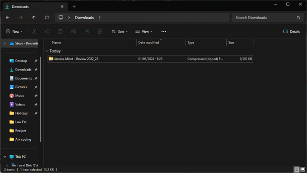 Once the export button has been selected the Zip file will be downloaded into your download folder as below: